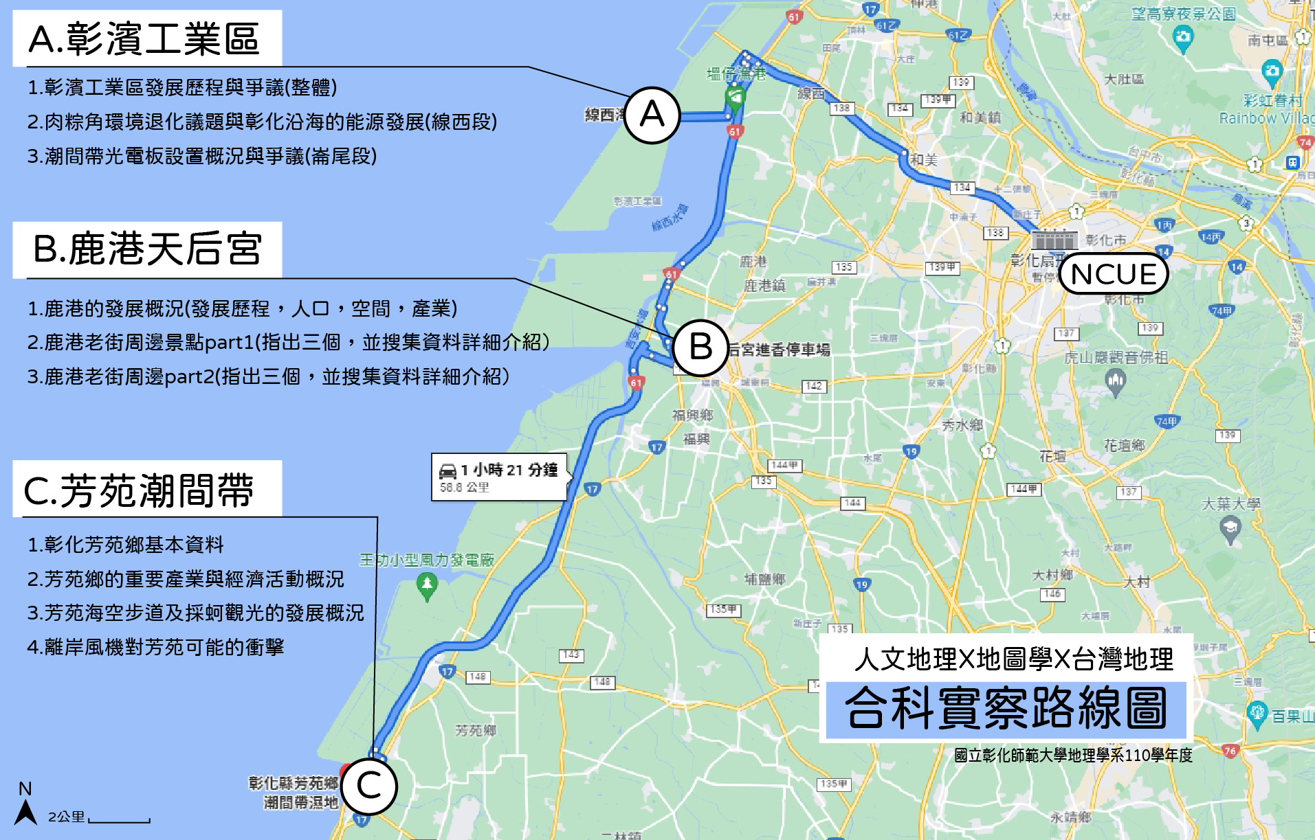 地點:彰濱工業區與綠能開發、鹿港歷史文化與環境變遷、芳苑濕地與人造物海空步道